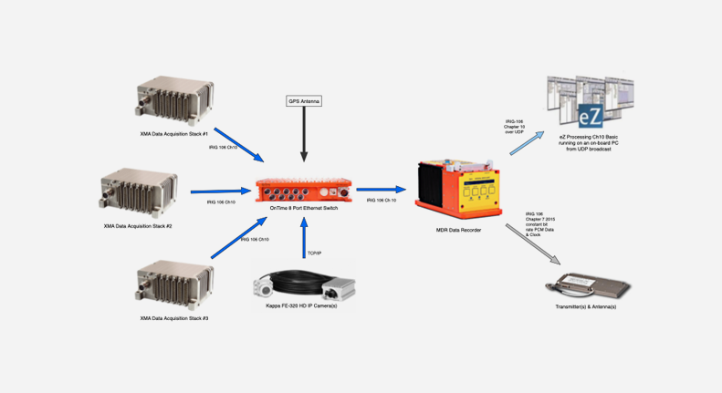 A distributed data acquisition system can be created on an Ethernet backbone with XMA DAUs in remote locations on the aircraft, sending data back to an MDR or MDR-GT for recording.